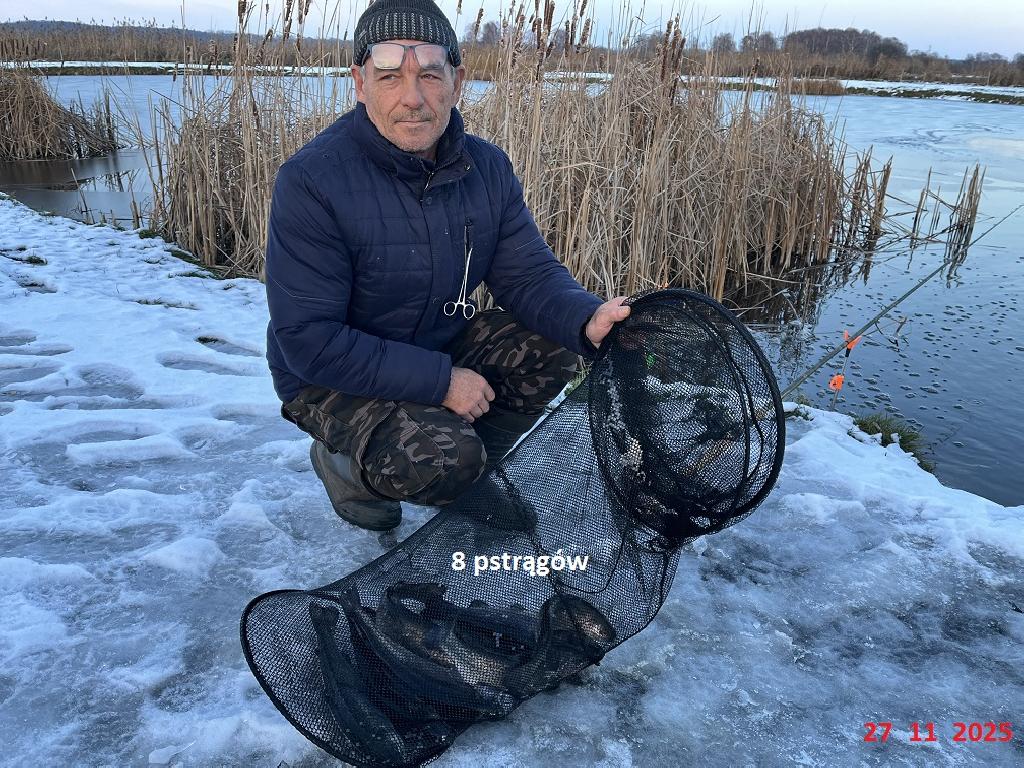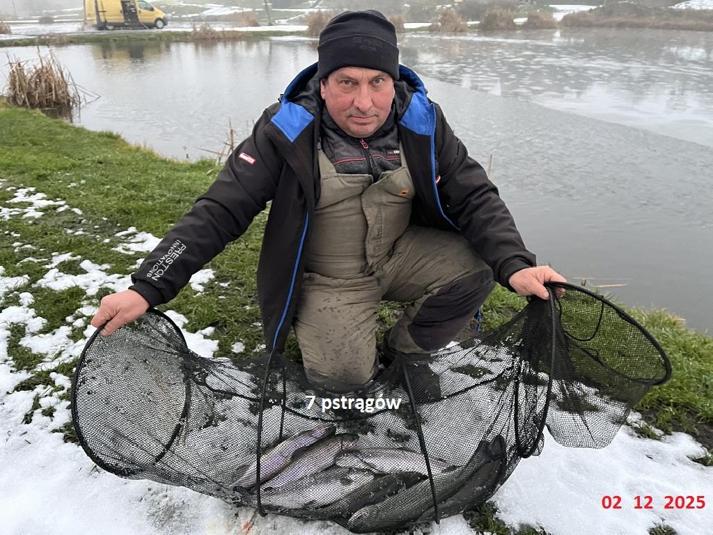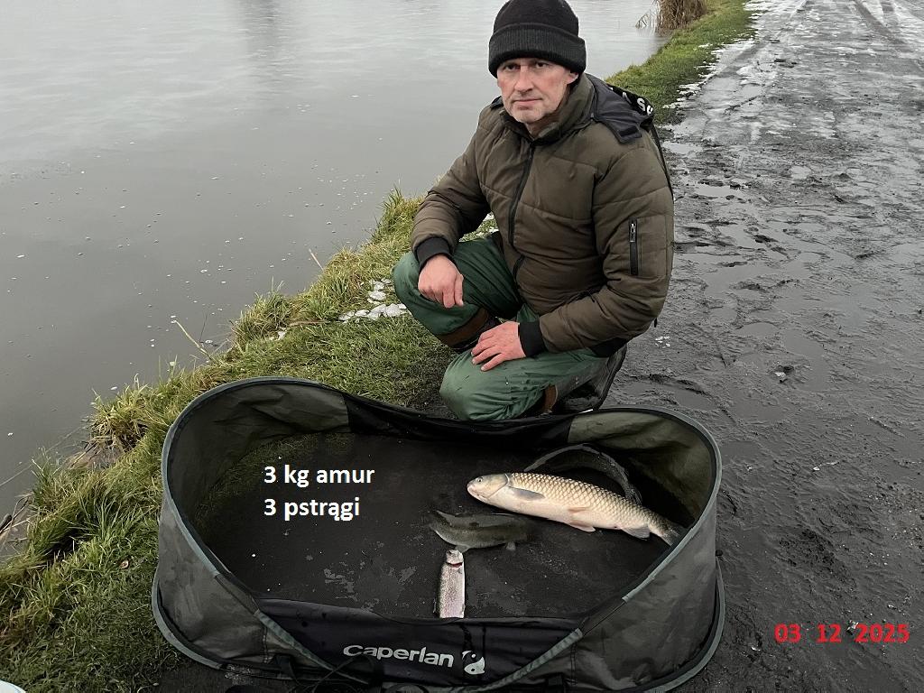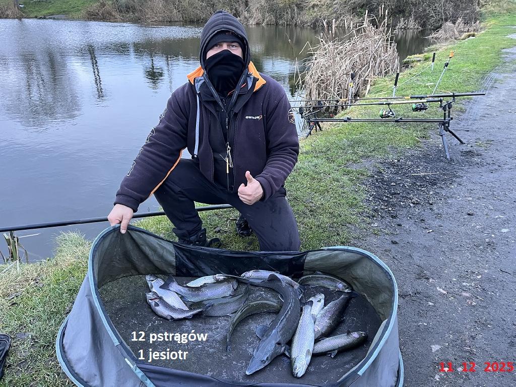 Na łowisku w każdą niedzielę, do odwołania, dozwolony jest połów ryb metodą spinningową. Podhaczone ryby złowione metodą spinningową wypuszczamy do wody z wyjątkiem szczupaka, sandacza, okonia i pstrąga. Odbędzie się zarybianie pstrągiem stawy 1,2,3,4 dnia 02-01-2026. Zarybianie pstrągiem 86 kg stawy 1,2,3,4 dnia 27-12-2025. Zarybianie pstrągiem 80 kg stawy 1,2,3,4 dnia 19-12-2025. Zarybianie pstrągiem 50 kg stawy 1,2,3,4 dnia 12-12-2025. Zarybianie pstrągiem 54 kg stawy 1,2,3,4 dnia 5-12-2025. Zarybianie pstrągiem 33 kg stawy 1,2,3,4 dnia 28-11-2025. Zarybianie pstrągiem 114 kg staw nr. 1, 2, 3 dnia 21-11-2025 r. Zarybianie amurem 350 kg na wszystkie stawy, pstrągiem 100 kg i jesiotrem 68 kg staw nr. 1, 2, 3 dnia 14-11.2025 r. Zarybianie pstrągiem 90 kg jesiotrem 25 kg staw nr. 1, 2, 3 dnia 07-11-2025 r. Zarybianie jesiotrem staw nr. 1, 2, 3 dnia 31-10-2025 r. Zarybianie jesiotrem , pstrągiem 24-10-2025 r. Zarybianie jesiotrem 100 kg 17-10-2025 r. Zarybianie jesiotrem , pstrągiem karasiem 1200kg 10-10-2025 r. Uwaga dniówka rozpoczyna się od godz. 5.00 rano. Uwaga zmiana w regulaminie punkt 1.